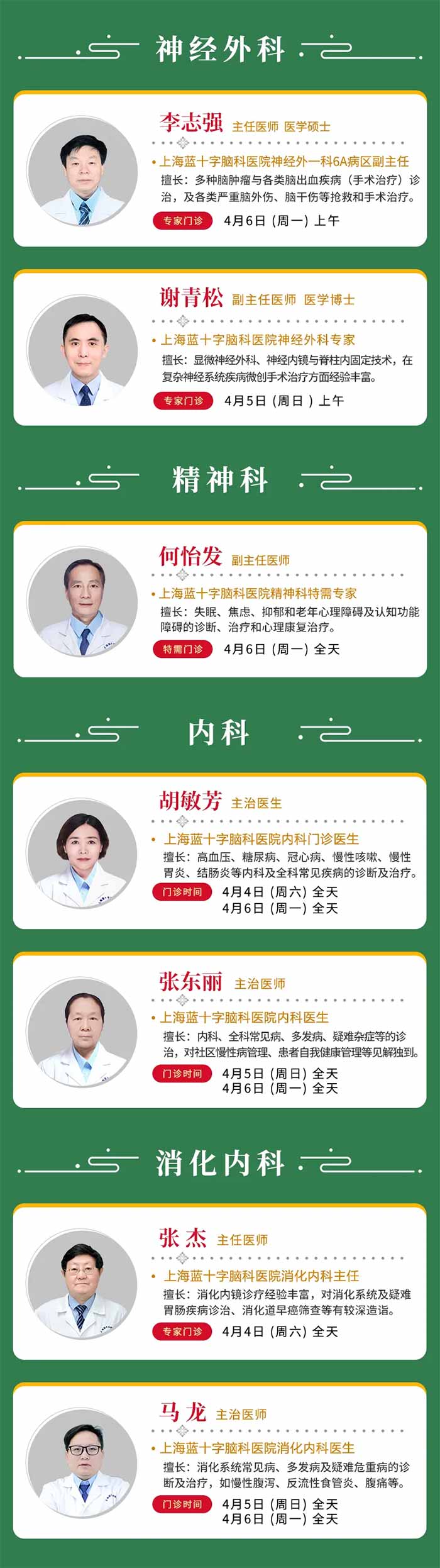 根据国务院发布的节假日安排通知精神,结合医院具体情况,上海蓝十字脑科医院【同济大学附属脑科医院(筹)】清明节假期间(4月4日-4月6日)门、急诊照常开放,具体安排如下,敬请提前安排好工作生活,有序就诊!
