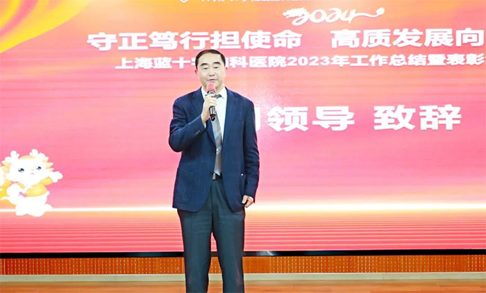公司刘轶永总经理致辞,代表蓝生及卓立强董事长向全体人员致以诚挚的谢意和祝福。他说,2023年殊为不易,却又不同凡响,蓝生穿越风浪,呈现业绩增长创新高、学科人才结新果、新院建设展新颜、全面治理翻新篇、公司发展焕新颜“五新”气象,这其中有蓝十字浓墨重彩的一笔。作为蓝生旗下旗舰脑科,2023年蓝十字取得了突出的成绩:业务发展高水平、学科建设高质量、医院治理高标准、医院发展高起点和高层次人才荟萃。刘轶永总经理肯定医院成绩和全体蓝十字人艰辛付出的同时,对医院的发展充满信心和期待,表示,“蓝十字的未来一定越来越好!”