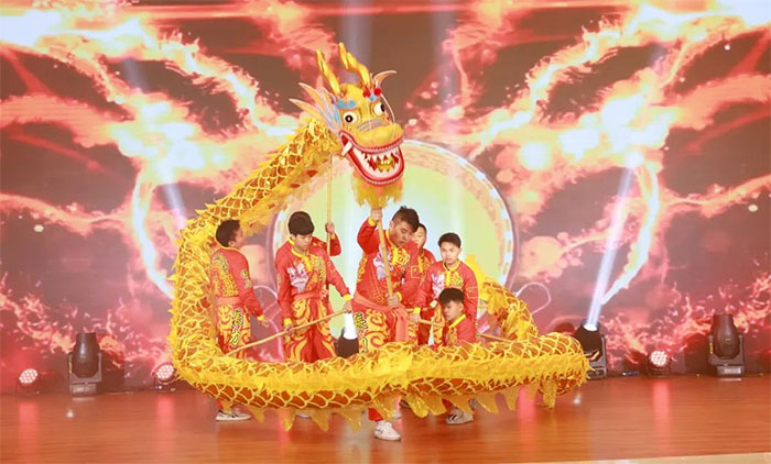 开场舞龙《龙腾四海贺新春》点燃全场气氛,正式开启迎新春联欢晚会。