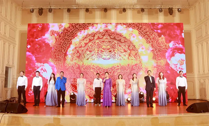 晚上临近7:00,在总结表彰大会完美收官后转入迎新春联欢晚会。偌大的宴会大厅内,华灯璀璨、热闹非凡。
