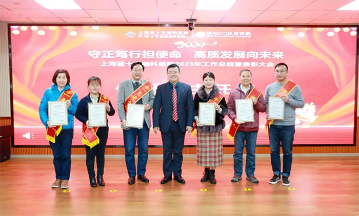 表彰先进,弘扬正气,凝聚力量。朱敏总经理通报了医院2023年度先进表彰决定。榜样为灯、追光前行!会上,刘轶永总经理及院领导班子依次为先进集体及优秀个人颁奖,号召全院职工向榜样看齐、向先进学习,立足岗位、争创新功。
