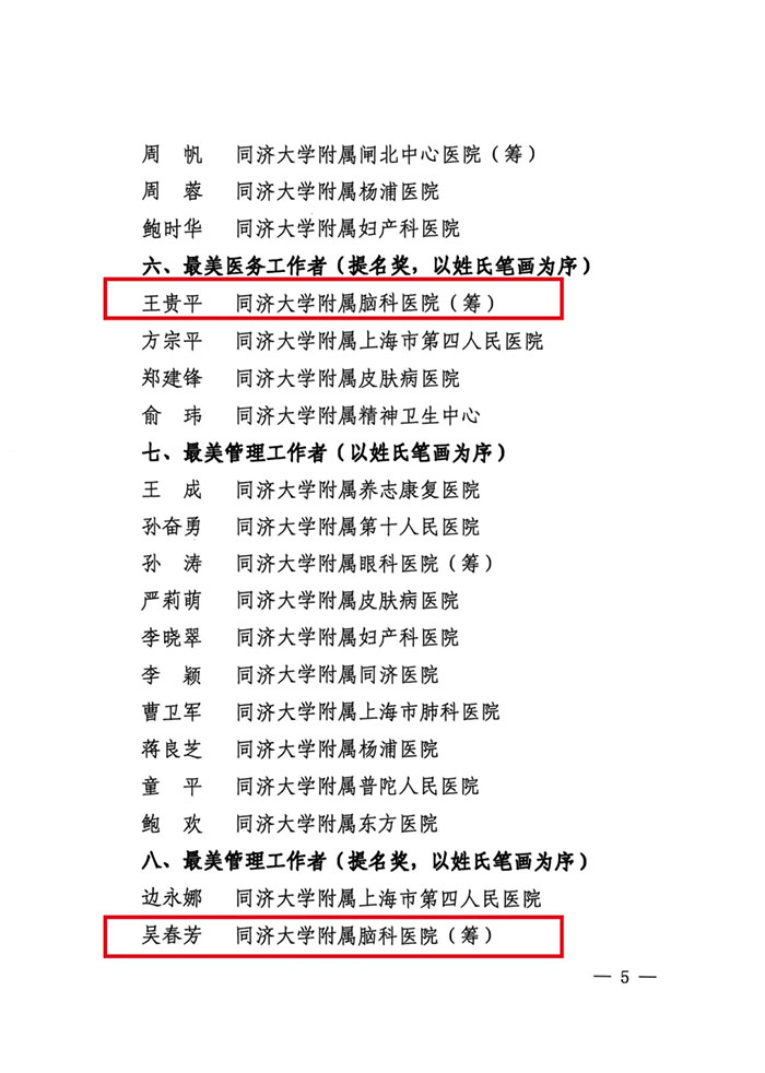 上海蓝十字脑科医院【同济大学附属蓝十字脑科医院(筹)】卢云鹤、张庆成、王贵平、吴春芳4人喜获荣誉称号!